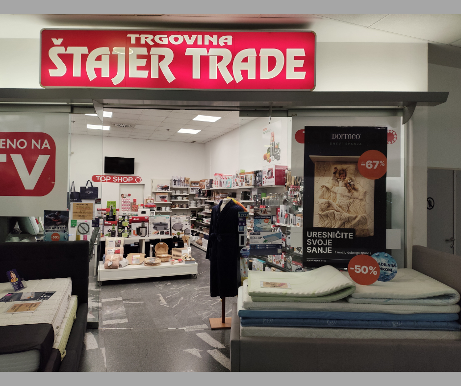 Trgovina Štajer Trade prinaša kakovost in zanesljivost pri izdelkih blagovnih znamk kot so Delimano, Walkmaxx, Dormeo...Nudimo širok izbor izdelkov kuhinjskega in spalnega programa, vse za dom in prosti čas.